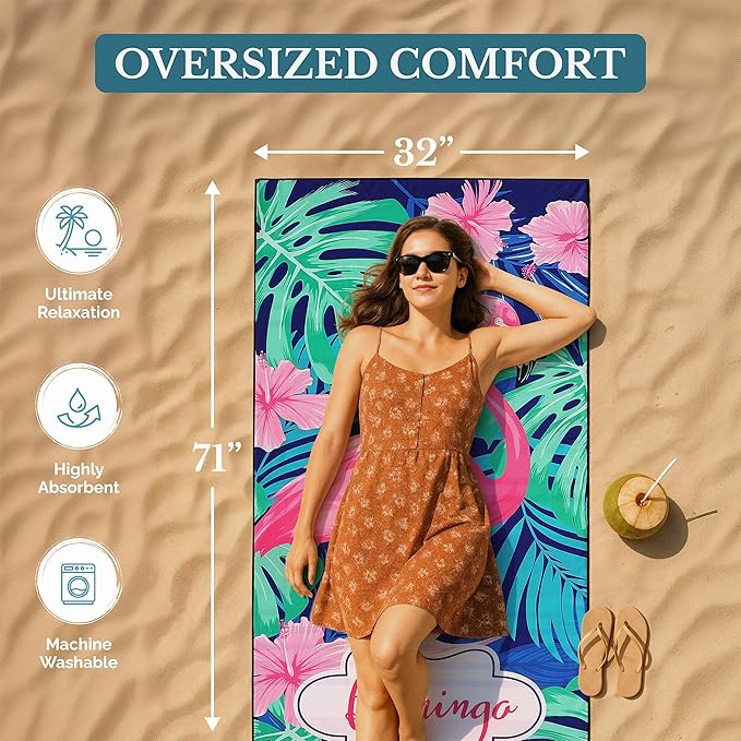 - Oversized & Double-Sided Prints – Inspired by Iconic Beaches: Each towel measures a generous 71"x32" (180x80 cm), providing plenty of space for comfort. Designed with double-sided prints, our towels feature stunning patterns inspired by world-famous beaches and bays. Whether at the pool, beach, or camping, enjoy vibrant colors that won’t fade, even after machine washes.