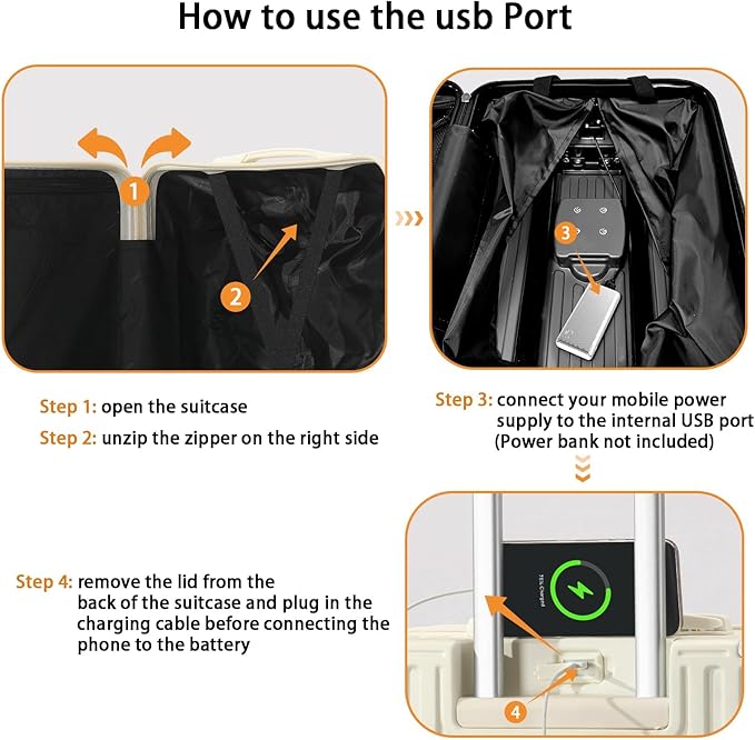 - 【Multifunctional Holder Design AND Built-in USB Port】This Luggage with cup holder especially designed water cup holder and hook on the luggage case, all is to provide a comfortable and convenient travel experience.The suitcase with a built-in USB port(Power bank not included), provide quick connection to your portable electronic device for a quick charge.Not worried about the phone is out of power any more.