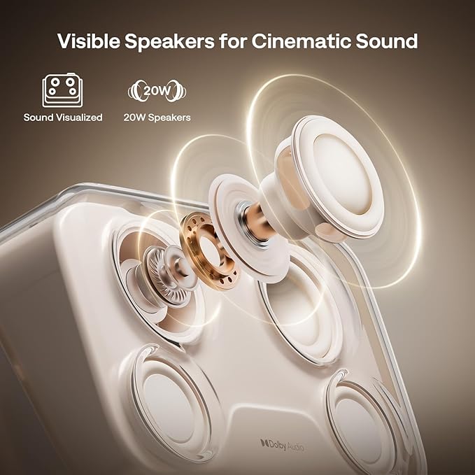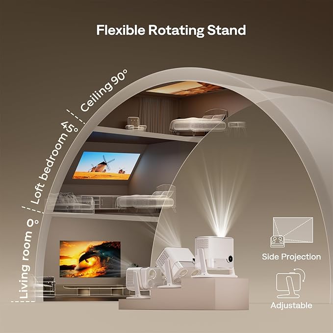 - Projector for Bedroom - 360° Visible Speakers & DoIby Audio: 20W high-power speakers with DoIby Audio bring cinema-grade sound to life. The rear-facing Visible Sound design delivers deep bass and crisp highs, turning every movie night into an auditory delight.