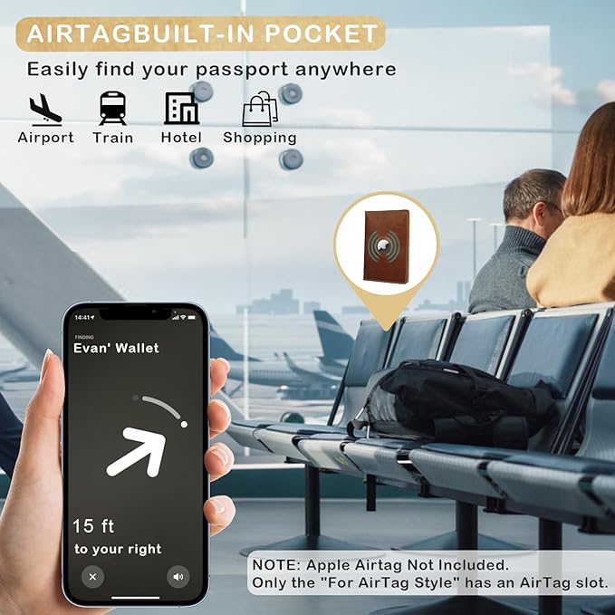 - ADD EXTRA CONVENIENCE: NOTE - "Classic Style" doesn't come with an Airtag slot. "For Airtag Style" comes with a built-in Airtag slot (AirTag not included), making it easy for you to find your passport anywhere. Carrying this airtag passport holder, you won't need to purchase an additional Airtag protective case, saving you money and space in your bag