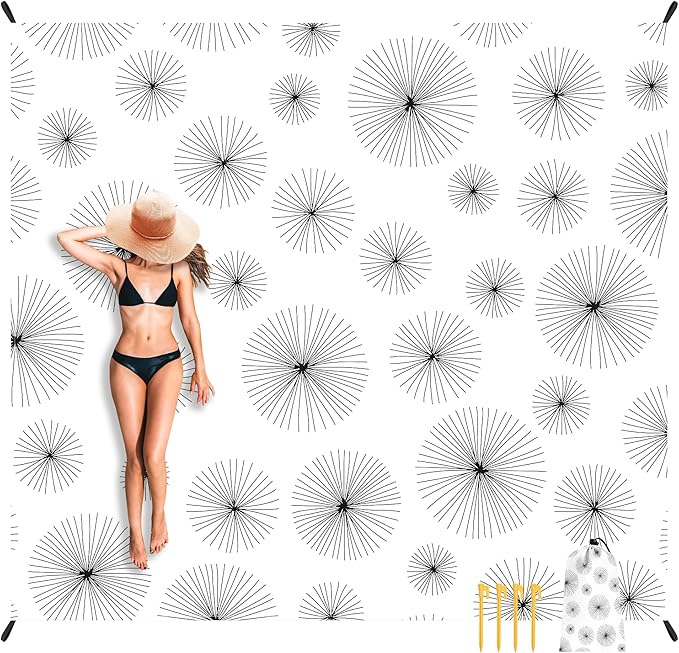 - Wind-Resistant & Durability: Reinforced edges and included ground stakes keep the blanket secure even on breezy beach days. The premium material ensures long-lasting performance.