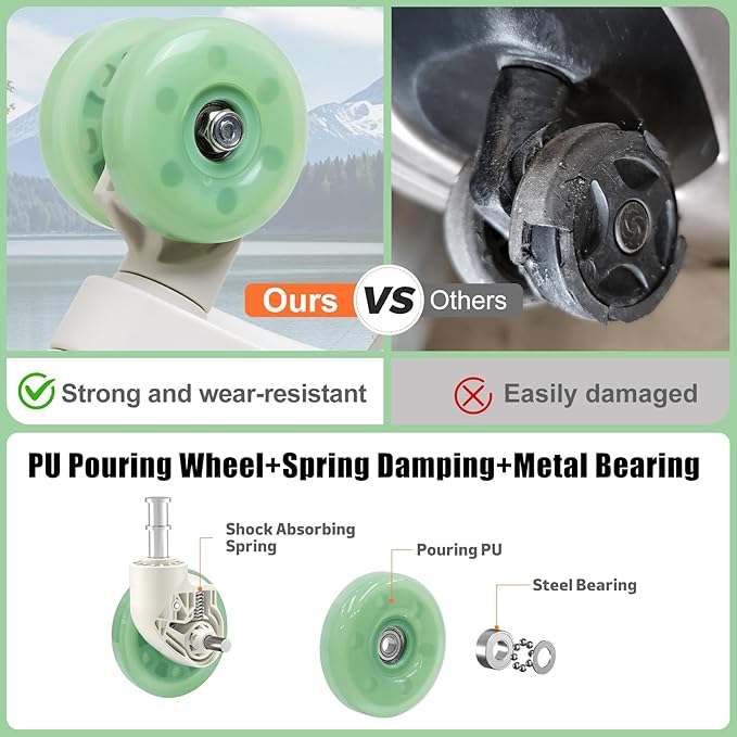 - JELLY WHEELS: The wheels determine the durability of the luggage. The suitcase is equipped with PU infused reinforced jelly wheels and shock absorbing springs are added. Not only stylish in appearance, but also smoother, more wear-resistant and shock-absorbing
