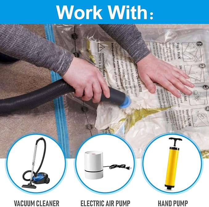 - 【Space-saving & Protective】When used in conjunction with an air pump/ vacuum cleaner, it extracts air from the bag, tightly compressing clothing. This not only saves space, but also effectively prevents moisture, dust, and odors.