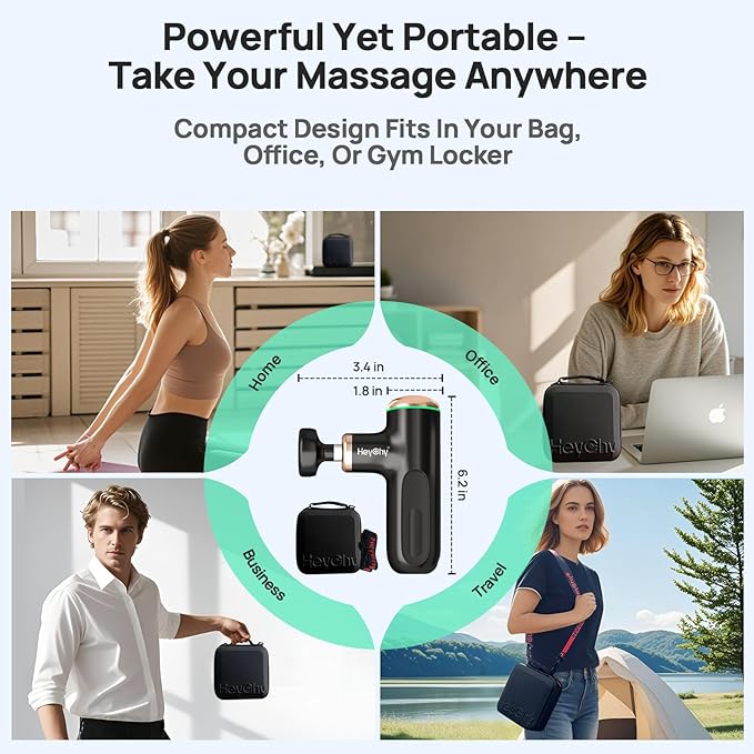 - 【Super Mini Design for Your Pocket】Our mini massage gun only weights 0.6lbs, which can be easily put in both bags and pockets. The ergonomic L-shaped design and skin like feel makes you love it, and you can easily carry it in the gym, office and traveling to relax your body.