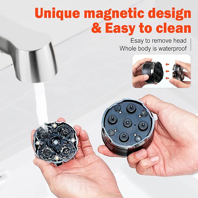 - 【Smooth 5D Floating Shaving System】 Experience an effortless, ultra-close shave. 5 independent floating heads and 2-speed modes perfectly contour to every curve of your head, face, and neck, easily tackling thick beards for a smooth result without irritation.