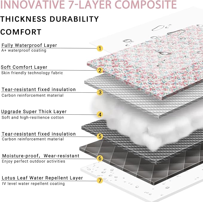 - [7-Layer Structure]This picnic mat features an advanced 7-layer structure design, with a soft cotton layer in the middle that provides excellent cushioning. This ensures a comfortable sitting and lying experience during outdoor activities. Whether you're on grass, sand, or using it indoors, it offers ample support.
