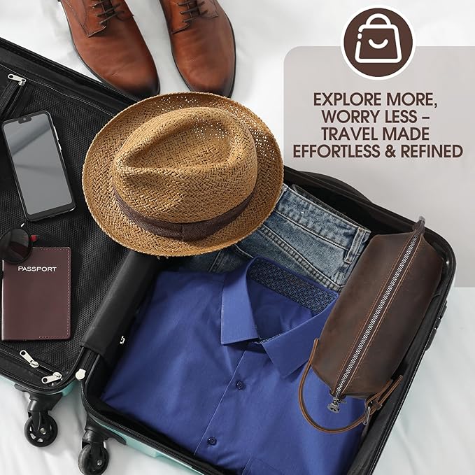 - A Refined Gift for Discerning Tastes: Perfect for gifting, this luxury leather toiletry bag for men appeals to vintage enthusiasts and practical minimalists alike. Its timeless design and premium craftsmanship make it a thoughtful present for birthdays, holidays, or corporate occasions, blending everyday utility with heirloom-quality appeal.