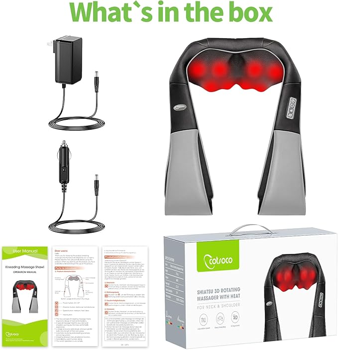 - 【Deep Massage, Soothe Body and Mind】 The Cotsoco Neck and Shoulder Massager is designed to move freely, making it suitable for most parts of the body, from the shoulders to the feet, providing a full-body massage. With 3 adjustable massage speeds and 16 powerful 3D massage nodes that automatically change direction every minute, this massager offers a relaxing experience after long hours of work or physical activity.