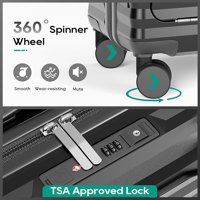 - TSA Lock & Silent Wheels: TSA-approved combination lock keeps your valuables safe while traveling. Features a 360° silent swivel wheel design that glides easily through airports and busy streets for a smooth travel experience.