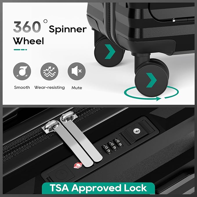 - TSA Lock & Silent Wheels: TSA-approved combination lock keeps your valuables safe while traveling. Features a 360° silent swivel wheel design that glides easily through airports and busy streets for a smooth travel experience.