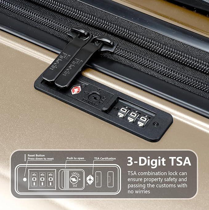 - Spinner Wheels & TSA Lock: Navigate airports effortlessly with 360° smooth-rolling silent spinner wheels that ensure stability and control on any surface. The TSA-approved combination lock provides reliable security while allowing hassle-free inspections during travel.