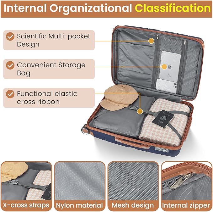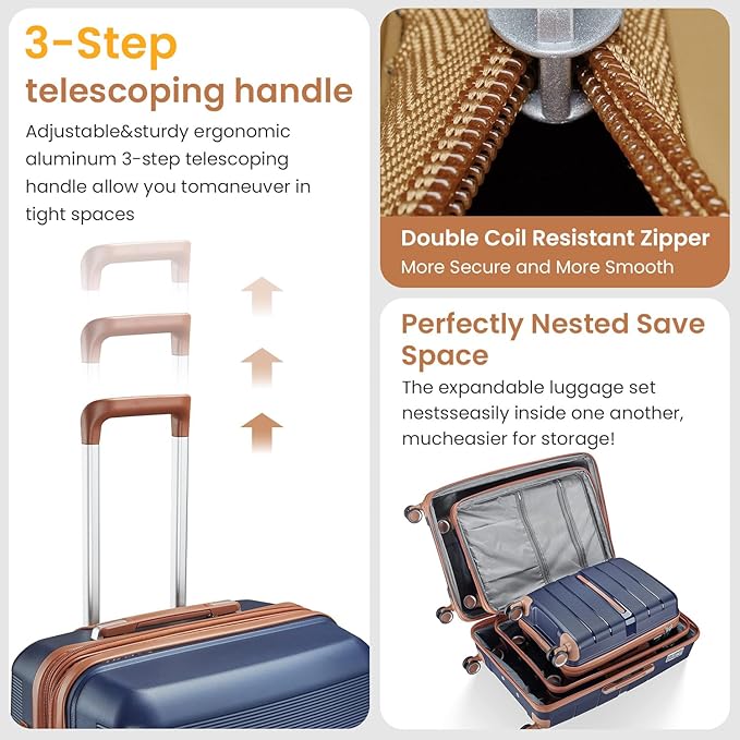 - 【360° Silent Spinner Wheels & 3-Stage Aluminum Handle】 Effortlessly glide through terminals with 8 smooth-rolling, noise-reducing wheels. The ergonomic aluminum telescopic handle adjusts to 3 heights, ensuring comfort for travelers of all heights.