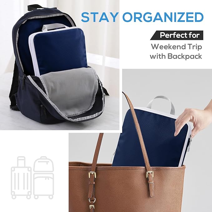 Compression Packing Cubes, 6 Set Packing Cubes for Travel Compression, Lightweight Compressible Package Organizer for Carry On and Suitcases, Navy and White