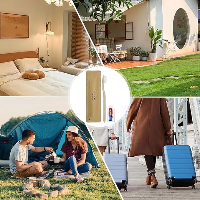 50 Pack Travel Size Toothbrushes with Toothpaste in Bulk, Disposable Individually Wrapped Wheat Straw Portable Toothbrushes Kit for Homeless, Nursing Home, Charity, Shelter, Airbnb and Hotel