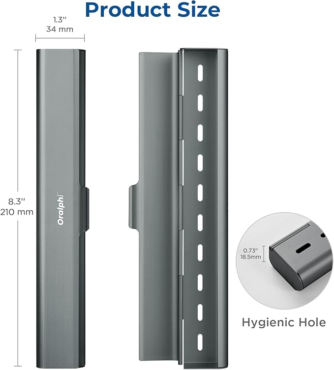 - Package Included: You will get 1 pack aluminum toothbrush box, thoughtfully designed to fit most manual toothbrushes with dimensions of 8.3 x 1.3 x 0.7 inches (L x W x H). The perfect size for your needs, without compromising on style(Not for electric toothbrush)