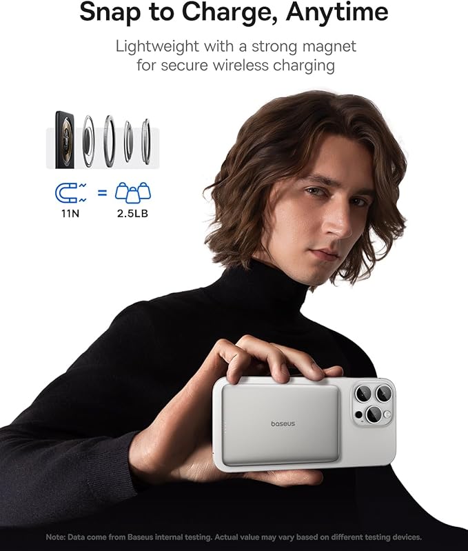 - ⚡️【Ultra-Slim, Ultra-Light, Ultra-Portable】: Baseus magsafe portable charger with a razor-thin 0.3in profile and a feather-light 3.8oz design, lighter than your iPhone. The 5000mAh power bank for iphone can slip seamlessly into your pocket, bag, or even wallet, the ultra-slim build ensures you’ll barely notice it’s there until you need instant power on the go.