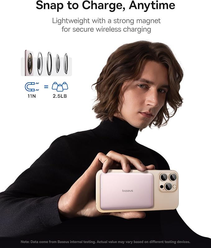 - ⚡️【Ultra-Slim, Ultra-Light, Ultra-Portable】: Baseus magsafe portable charger with a razor-thin 0.3in profile and a feather-light 3.8oz design, lighter than your iPhone. The 5000mAh power bank for iphone can slip seamlessly into your pocket, bag, or even wallet, the ultra-slim build ensures you’ll barely notice it’s there until you need instant power on the go.