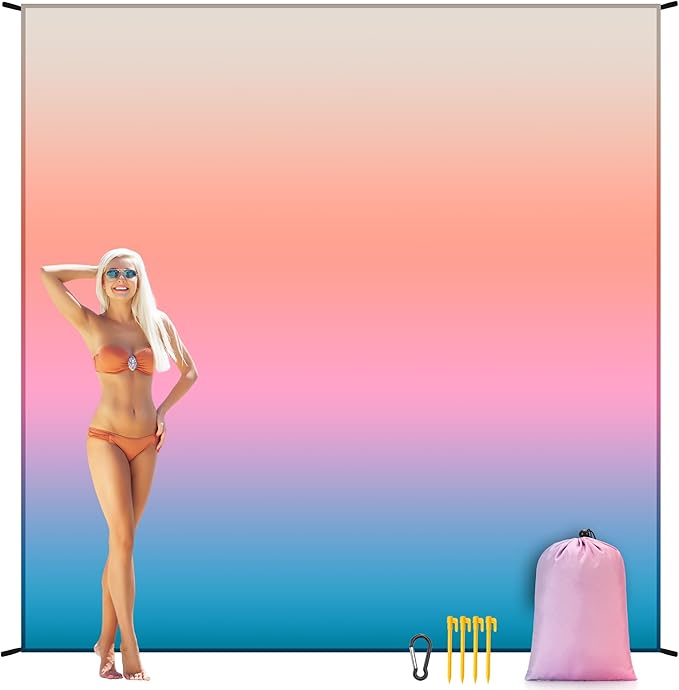 - 【Waterproof and Sandproof】Made from durable nylon, this quick-drying mat repels sand. Shake it off to remove debris. Each corner has pockets for sand or rocks, and included stakes keep it anchored.
