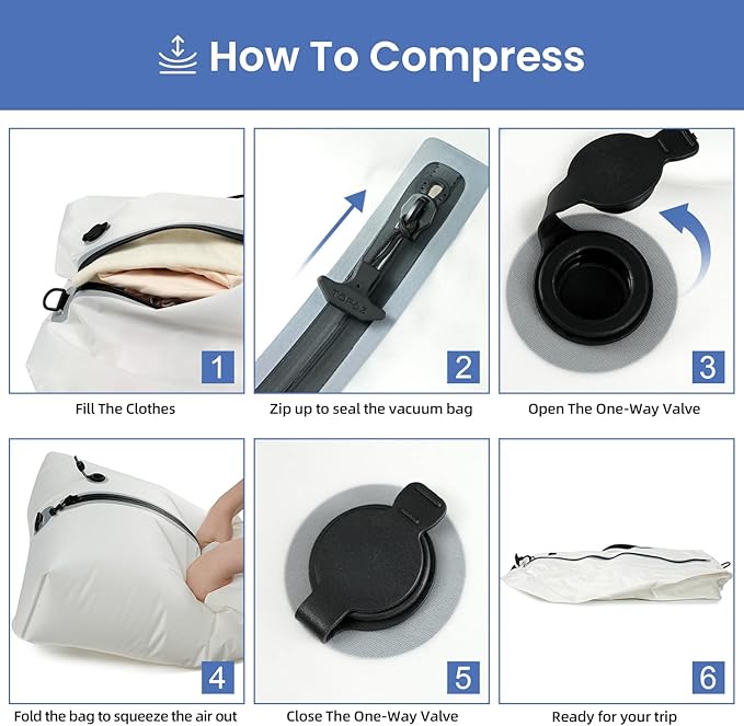 - Compression Function: Featuring an incredibly simple and quality one-way valve design, this bag allows for easy air expulsion by hand squeezing or rolling. Additionally, you have the option to purchase our store's mini pump for even more effortless and efficient compression