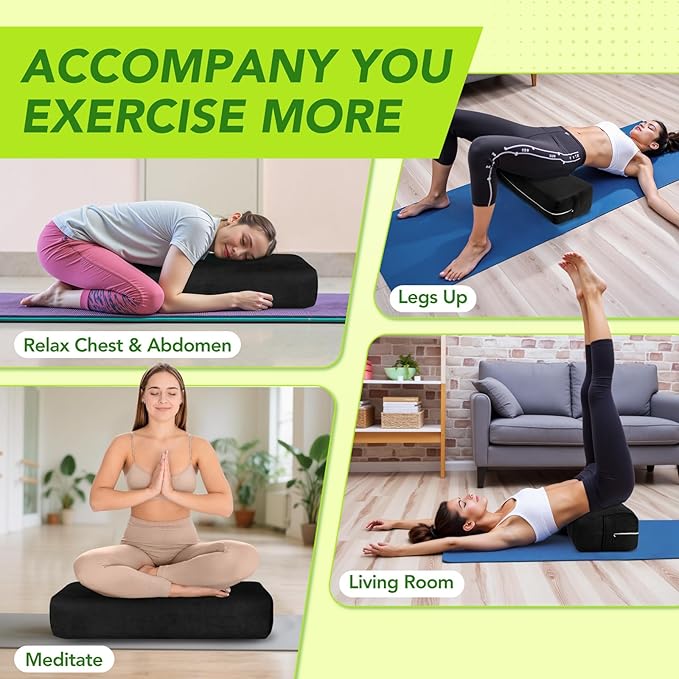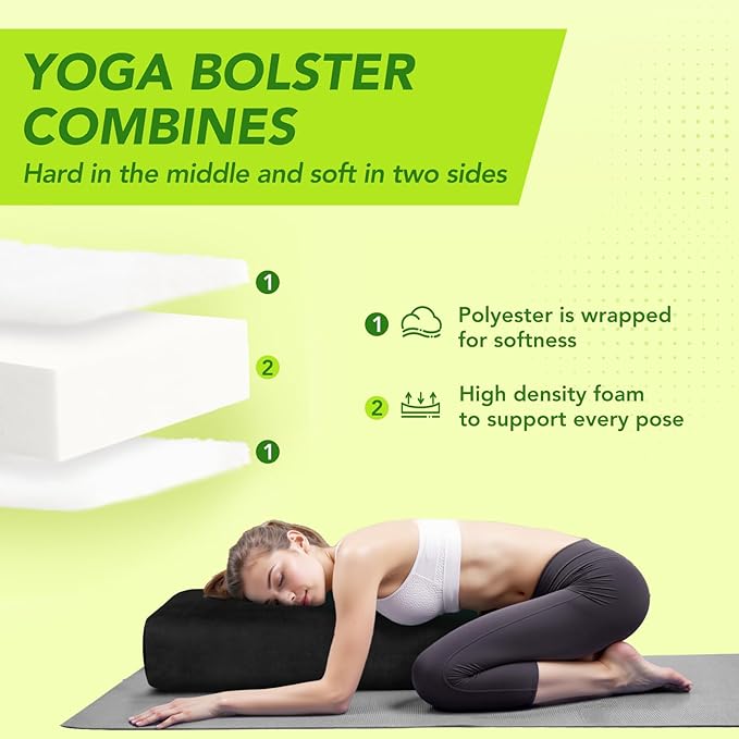 - Supportive Yet Soft / Our yoga meditation bolster adopts 5" high density foam in the middle to provide stable supporting and maintains its shape, while the outer of foam is wrapped polyester for softness and comfort. Not easy to collapse or distort, perfect for relaxation on yoga