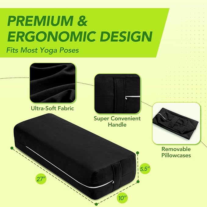 - Convenient and Portable / Our yoga pillow bolster features a built-in sturdy handle for hassle-free transport, we also included a white protective dust bag for storage and carry. You can effortlessly take your long yoga pillow to the studio, park or wherever, ensuring you never miss a session