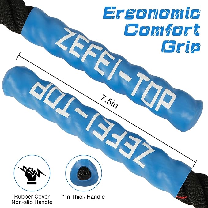 • 【Ergonomic Comfort Grip Design】Our weighted jump rope features an upgraded anti-slip handle crafted from high-quality polyolefin heat-shrink material. This innovative design enhances grip friction, evenly distributes tension, and reduces strain on your wrists and hands. Whether you're pushing through an intense workout or a casual session, the ergonomic handle ensures a comfortable and secure grip, delivering the perfect jump rope experience.