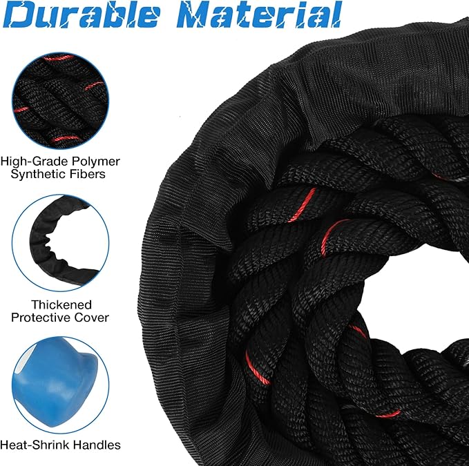• 【Durable Material】Crafted from high-density polymer synthetic fibers, this jump rope is designed for both durability and performance. The premium material ensures optimal weight distribution, making every movement more efficient and effective. Enhanced with a protective sleeve, the rope offers superior wear resistance, extending its lifespan even under intense use.
