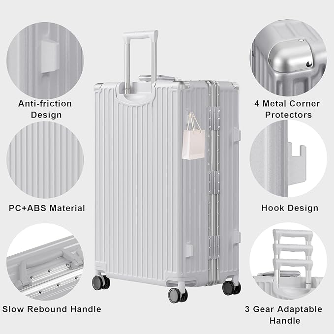 • 【4 Metal Corner Guards】The four corners of the luggage have 100% aluminium corner guards to further protect your luggage, even if the luggage is subjected to strong impacts, he can provide further protection and increase the usage time of the case.