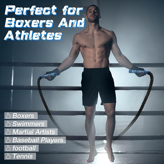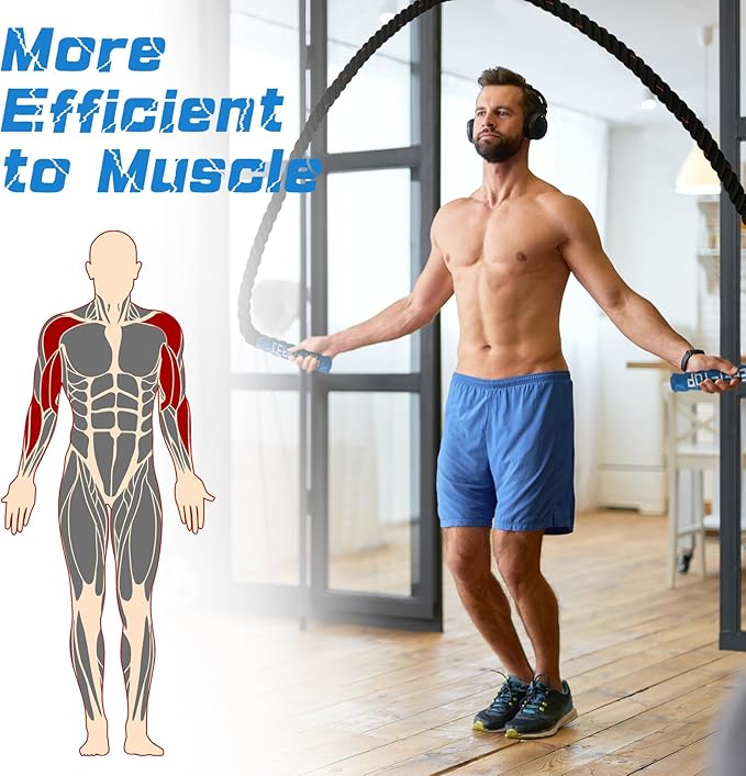 - 【Perfect Choice for Fitness】Unlike a regular skipping rope, the weighted jump rope leverages gravity to significantly increase exercise intensity, turning every jump into a powerful challenge. With each rotation, the weighted rope delivers the impact of 10 jumps with a standard rope, helping you achieve optimal fitness results in less time. Whether you're a boxer, a cardio enthusiast, or simply jumping to lose weight, this weighted jump rope is the ultimate tool to take your training to the next level.