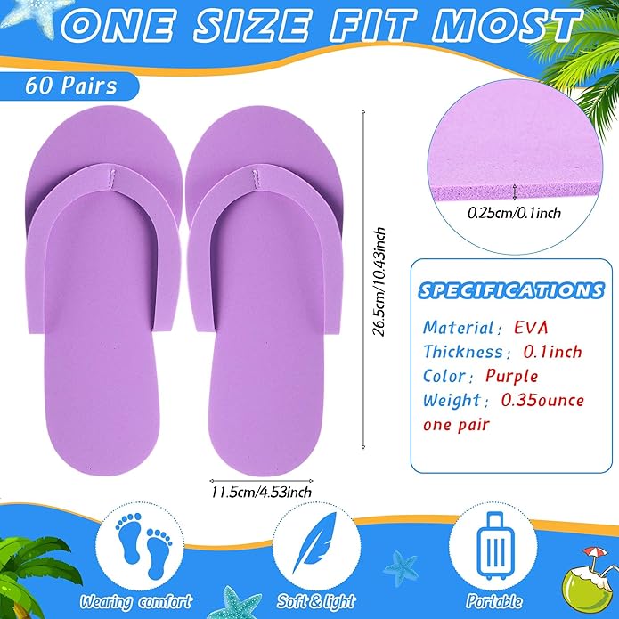 - Abundant quantity: there are 60 pairs of flip flop slippers in the package, with purple color, and ample quantity can meet your choosing, daily wearing and replacement needs