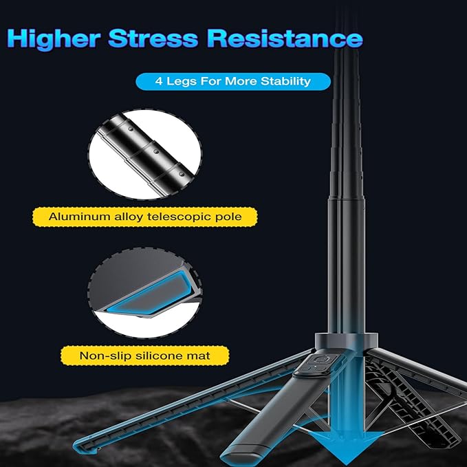 - Bluetooth Remote for TikTok Video Recording: The extendable tripod for iPhone with light comes with a rechargeable Bluetooth remote control, allowing you to easily manage TikTok from afar without needing to swipe on your screen. The rechargeable remote enables screen-free TikTok navigation (scroll/swipe/like functions), enhancing video shooting and viewing convenience