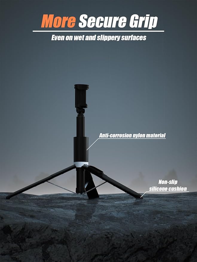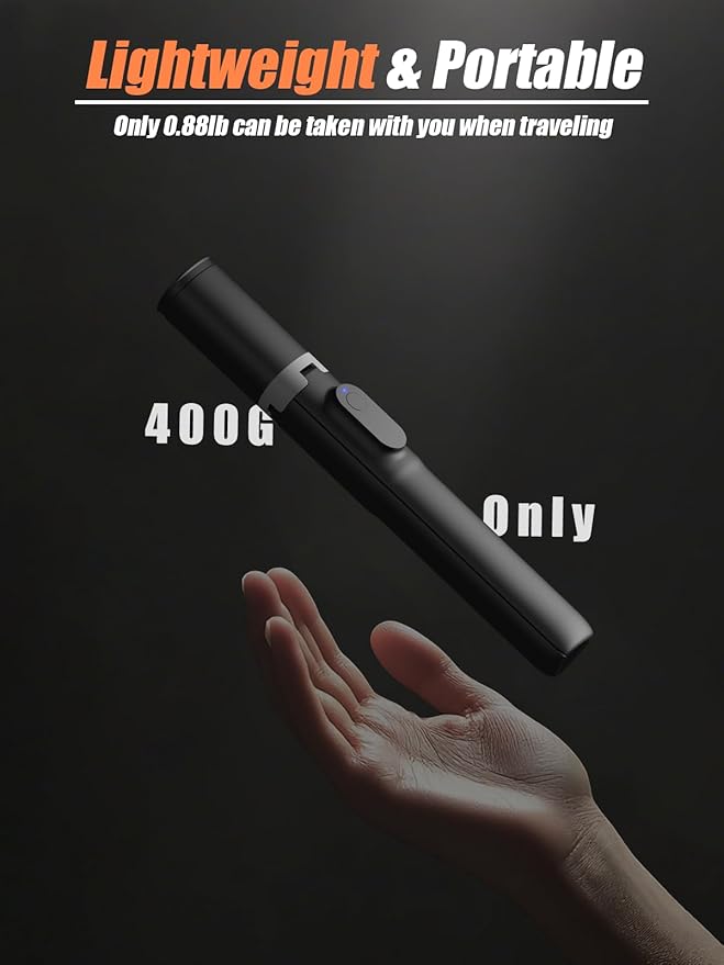 - Lightweight Portable Selfie Stick: Compact design for easy portability. This phone tripod weighs just 0.88 lbs when folded, making it perfect for backpacking, hiking, and other weight-sensitive scenarios. Features an aluminum alloy telescoping pole and a durable, corrosion-resistant nylon body, ensuring stable use even in humid environments.