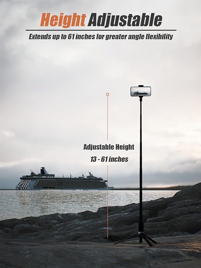- Foldable Tripod for iPhone: Featuring an 8-section telescopic pole with a maximum height of 61 inches, this selfie stick for iphone allows for wider-angle shooting and delivers a unique visual experience. Perfectly compatible with iPhone 15/15 Pro/15 Pro Max, iPhone 16/16 Pro/16 Pro Max, iPhone 17/17 Pro/17 Pro Max, Samsung Galaxy S24 Ultra/S24/A15, and most other models.