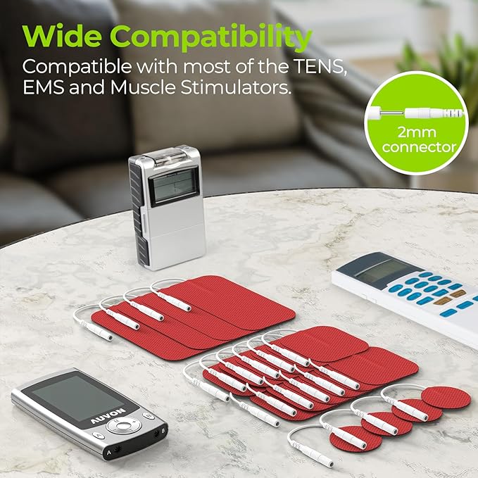 - Universal Compatibility: Standard 2mm connector TENS electrodes pads are classic and commonly used in the medical area, which makes it easier for you to find compatible TENS unit muscle stimulators and accessories. It is compatible with popular TENS and EMS units such as AUVON Rechargeable TENS unit, United Surgical TENS 7000, HeathmateForever YK15AB, Santamedical LFM-110, truMedic TENS machine