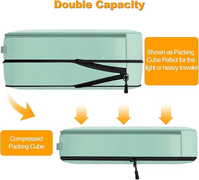 - Enhanced Durability – Heavy-Duty Zippers & Reinforced Handles:Made with high-density, tear-resistant fabric, these packing cubes feature premium dual zippers for smooth and reliable use. The Compression Packing cubes include reinforced handles, making them easy to carry separately or pack into suitcases, carry-ons, duffels, and backpacks!