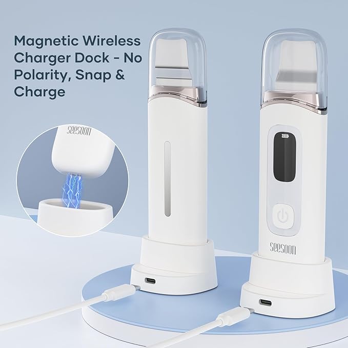 - Long-Lasting Battery &Perfect Gift: skin tag remover tool Equipped with a high-capacity battery for extended use, this lightweight blackhead removal tool (140g) is perfect for travel or daily use. Magnetic wireless charger dock - No Polarity ,Snap&Charge.Give the gift of youth and beauty for any holiday.SEESOON provides the best experience for our followers. Comes with an English manual and 12-month warranty—contact us anytime for support!