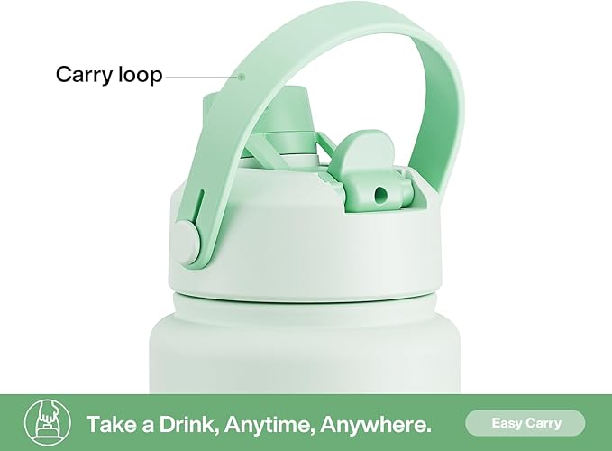32 oz Insulated Water Bottle with 2-in-1 Straw and Spout Lid, Keep Cold 24H, Leak-Proof, BPA-Free, Double Wall Stainless Steel Water Bottle for Sports, Gym, Travel, and School (Mint)