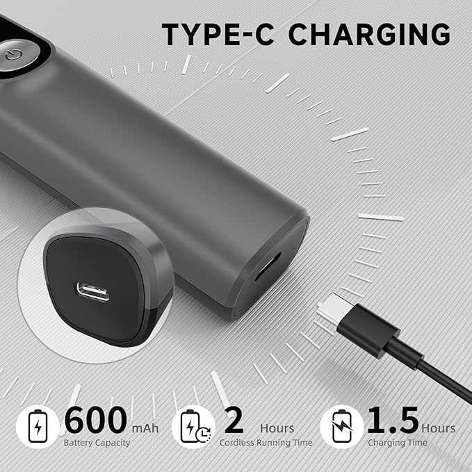- 【Ultimate Haircut Grooming Experience】: This men's electric shaver features high-performance stainless steel blades and a precision gap design for increased safety and minimised friction during trimming.The R-Shaped 360° Skin-Friendly Blunt Edge Blades trim hair quickly and safely without pulling or irritating the skin.The R-Shaped 360° Skin-Friendly Blunt Edge Blades are designed to provide a fast, safe trim without pulling or irritating the skin.