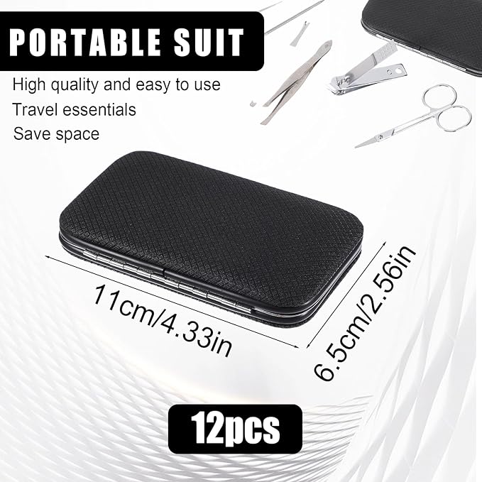 - Professional Stainless Steel Set:12-piece nail clipper set (11x6.5cm) with 8 multi-purpose tools.stainless steel ensures durability for manicure, pedicure and cuticle care. Black PVC case prevents tool corrosion