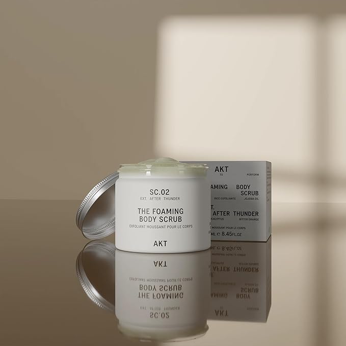 AKT The Foaming Body Scrub 8.4 Fl Oz, Skin Exfoliator, Body Scrub with Rice & Sugar, Papaya & Nourishing Oils, Natural Exfoliating Sugar Scrub with Vitamin E, Dead Skin Remover for Body