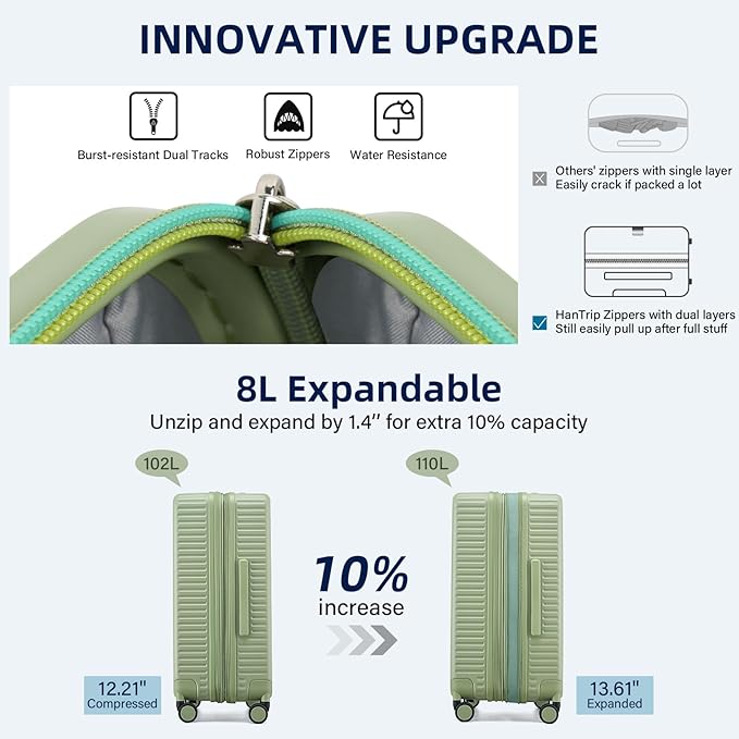 - 【Expandable Luggage Maximized Space】Measuring 30.32×20.28×12.21 inch (77×51×31CM), the suitcases with wheels checked luggage boast a built-in power bank pocket, a wet / dry seperate zone and 2 big compartments, large capacity for 7-10 days’ personal items and travel essentials. For extra room, just unzippper and expand the suitcase by 10% space. Excellent large checked luggage for travelers of large capacity demand.