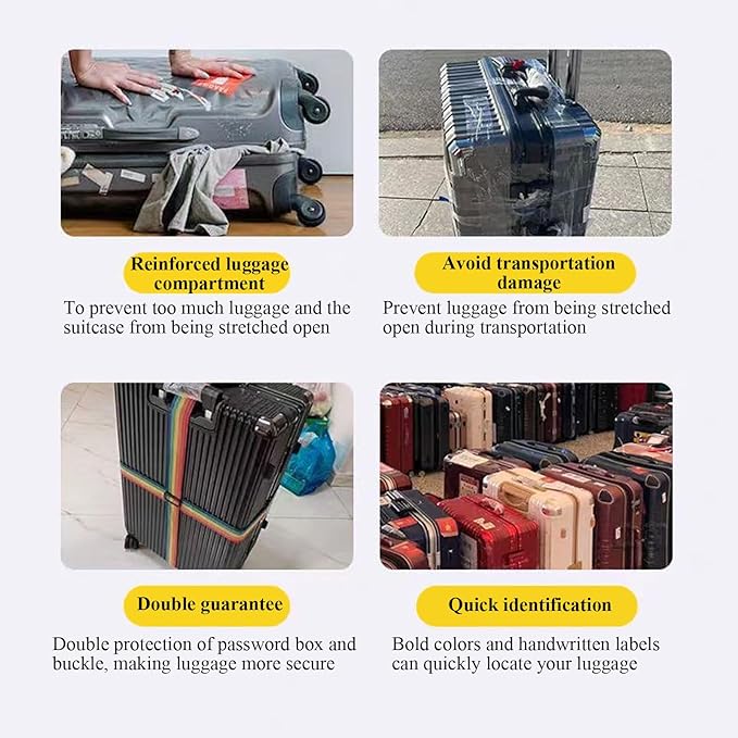 - [Material] : The luggage straps are made of PP polypropylene, which is very wear-resistant and brightly colored. The widened and thickened design makes it more resilient and has stronger tensile strength.