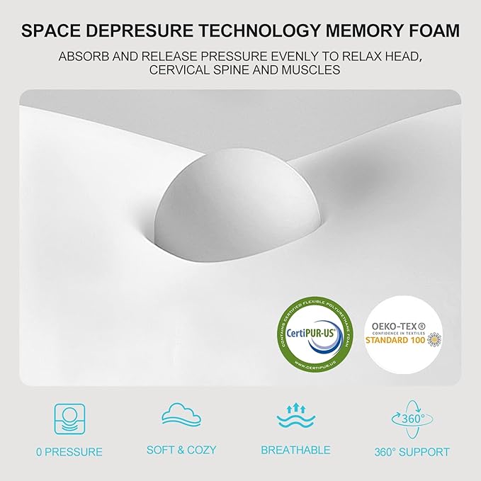 - ღ【100% PURE MEMORY FOAM PILLOW】The travel pillows for sleeping adopt the latest one-piece shaping technology and high-resilience 100% clean, additive-free memory foam. The luxurious memory foam filler is comfortable and durable, providing strong support, evenly releasing pressure, relieving neck pain and achieving ultimate relaxation.