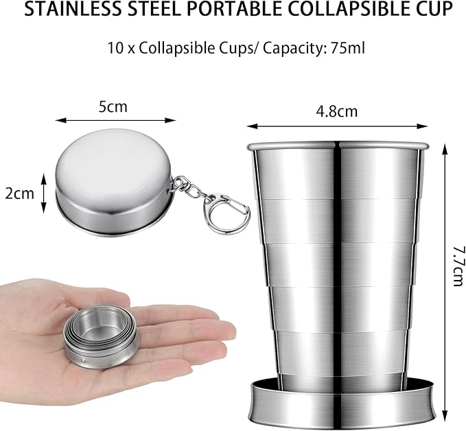 - Reliable Material: this foldable travel cup is made of stainless steel material, which is portable, foldable and sturdy; The stainless steel folding cup has a smooth touch and fine workmanship, is not easy to break, rust, fade or deform, can be reused, easy to clean, and can be folded and stored after cleaning, which can greatly facilitate your life