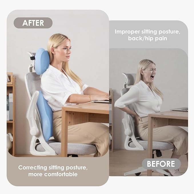 - Upgraded Silicone Memory Foam for Lasting Comfort: Made from soft, supportive dual memory cotton, our back support cushion offers a perfect balance of comfort and firmness. Our office seat cushion features a 3D contoured design that evenly distributes pressure on the hips and legs, alleviating discomfort. It retains its shape without flattening over time, ensuring a cozy experience and support whether you’re working at your desk or taking a long drive.