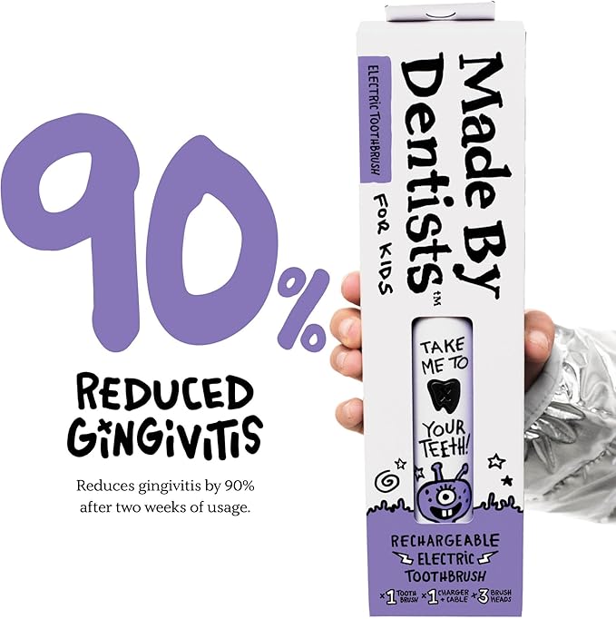- Rechargeable Electric Toothbrush – Specially designed for kids with an ergonomic grip and small brush head for gentle, effective cleaning. Perfectly sized for little mouths and recommended for children and toddlers aged 2 and up.