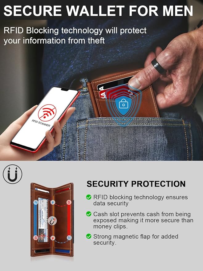 - ULTRA-THIN POCKET WALLET: This rfid wallet for men measures 3.94 x 2.83 x 0.39” and can hold up to 13 cards, fitting perfectly into your front pocket. Its compact design makes it ideal for everyday carry and an excellent travel wallet.