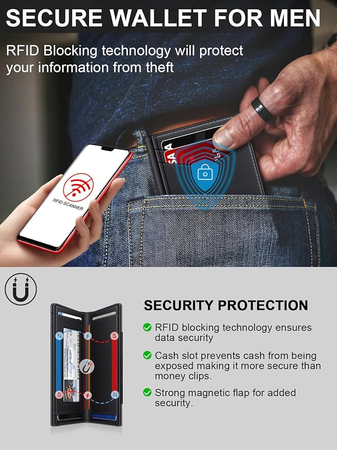- MAGNETIC CLOSURE: SEMORID minimalist wallet for men features a convenient magnetic closure, allowing easy access to your essentials while keeping them secure.