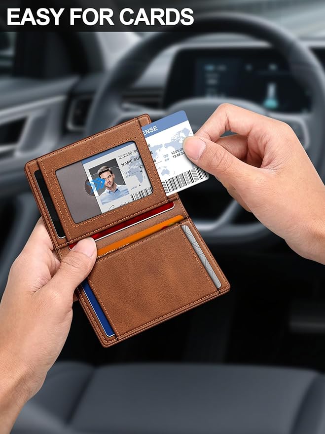 - TRANSPARENT ID WINDOW: The leather wallets for men includes a transparent ID slot on the inside, perfect for storing your ID, work badge, driver’s license, access card, or transit pass.