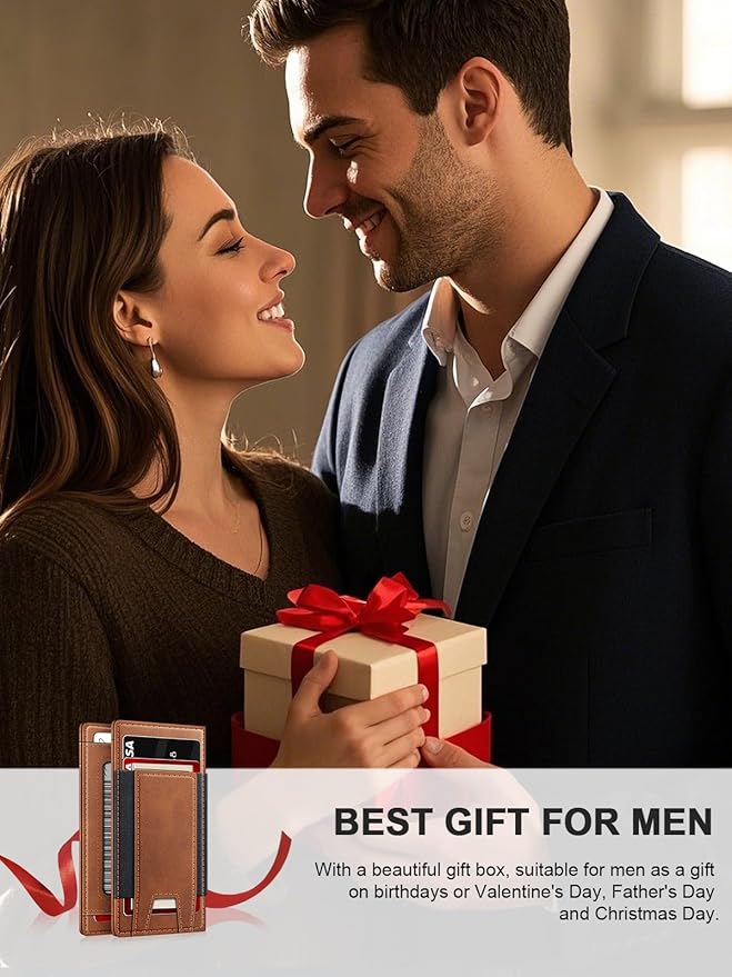 - PERFECT GIFT CHOICE: Designed to meet essential needs, this credit card wallet comes in an elegant gift box, making it an excellent gift for men on occasions like Christmas, Father’s Day, Valentine’s Day, or birthday.